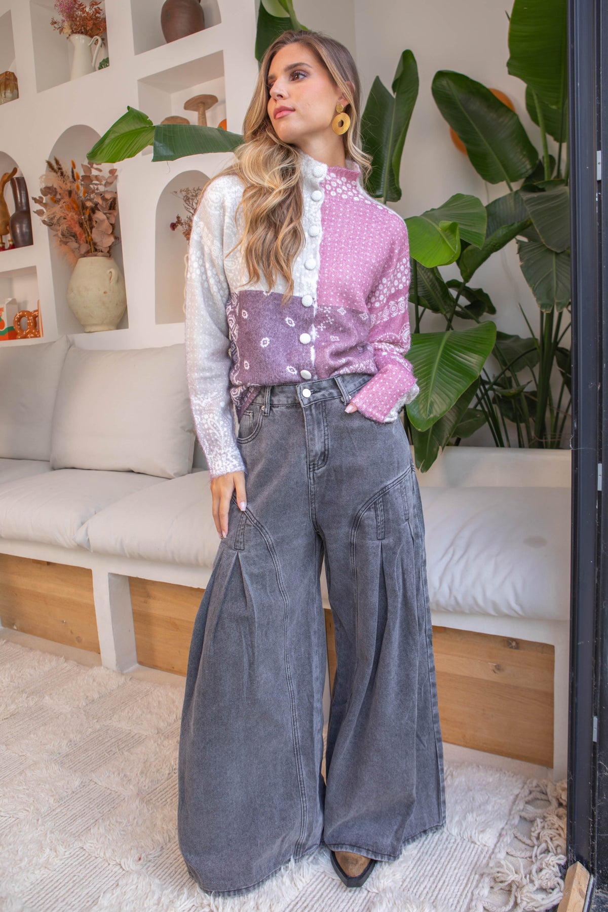 Ce cardigan en maille duveteuse séduit par son jeu de motifs façon patchwork bandana. Fermé par de jolis boutons recouverts de laine, il apporte une touche unique et féminine à vos tenues. Parfait à associer avec un jean pour un look casual chic.