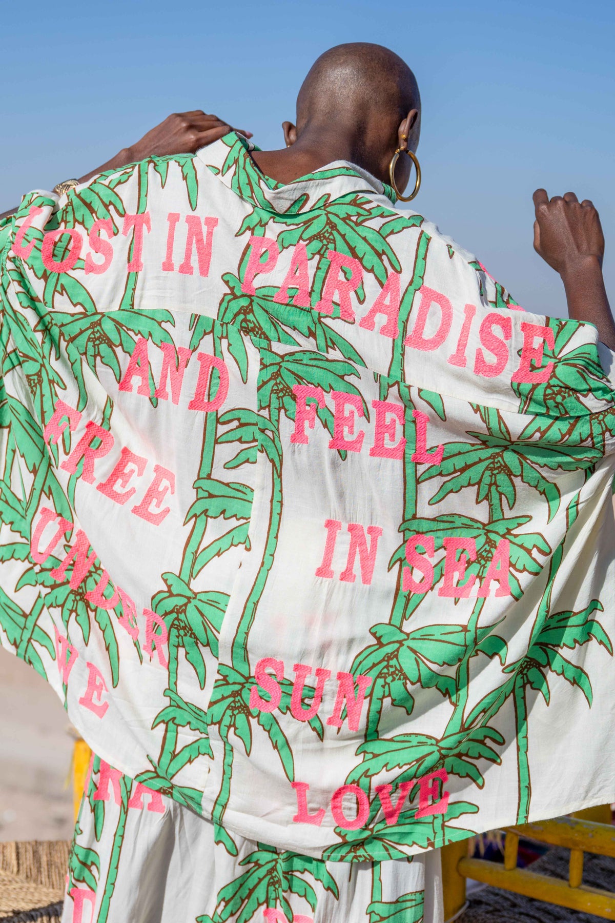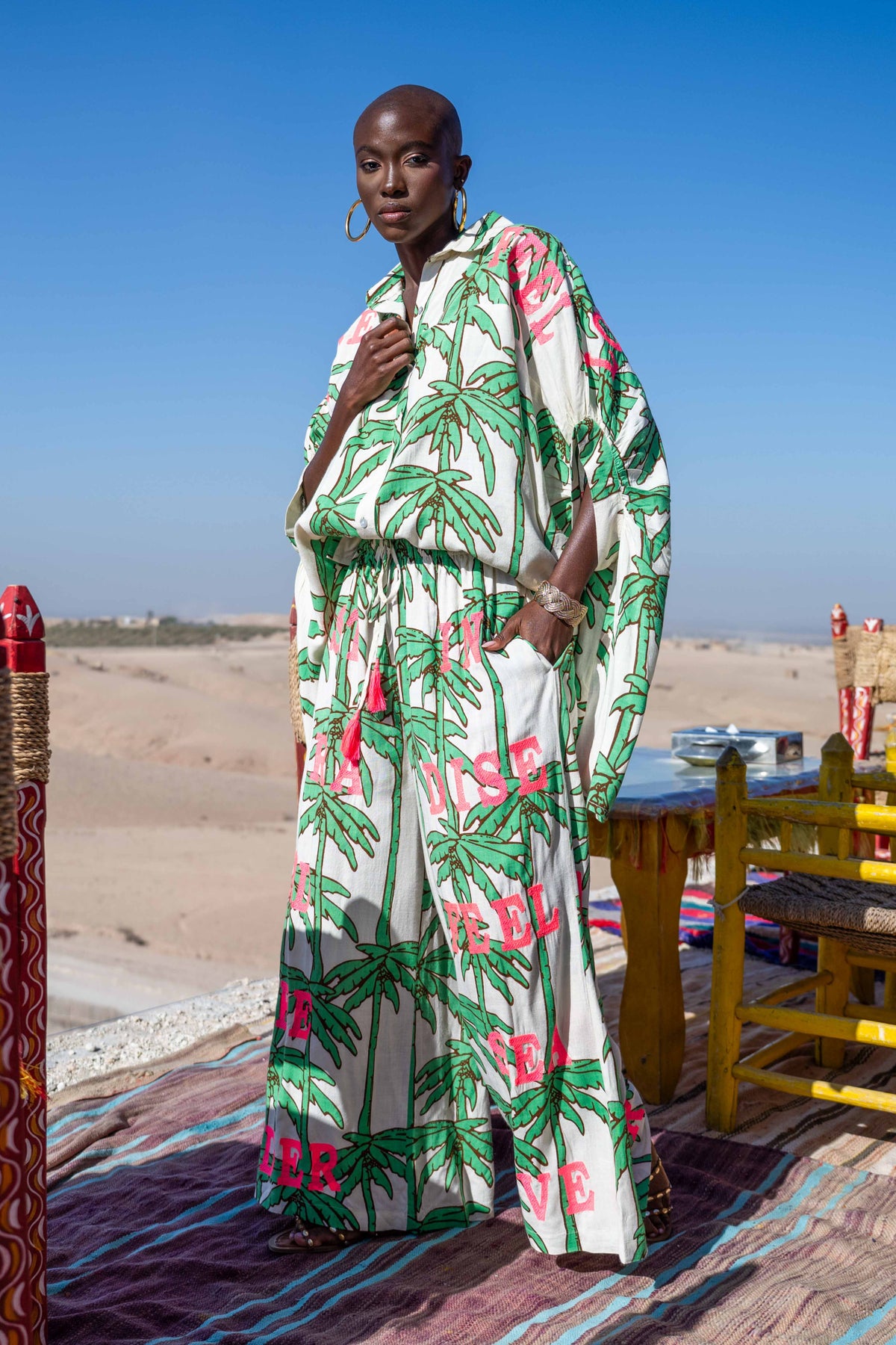 Dotée d’un col chemise et d’une patte de boutonnage sur le devant, elle structure la silhouette tout en conservant une allure bohème. Les manches larges accentuent le volume et apportent une vraie liberté de mouvement.