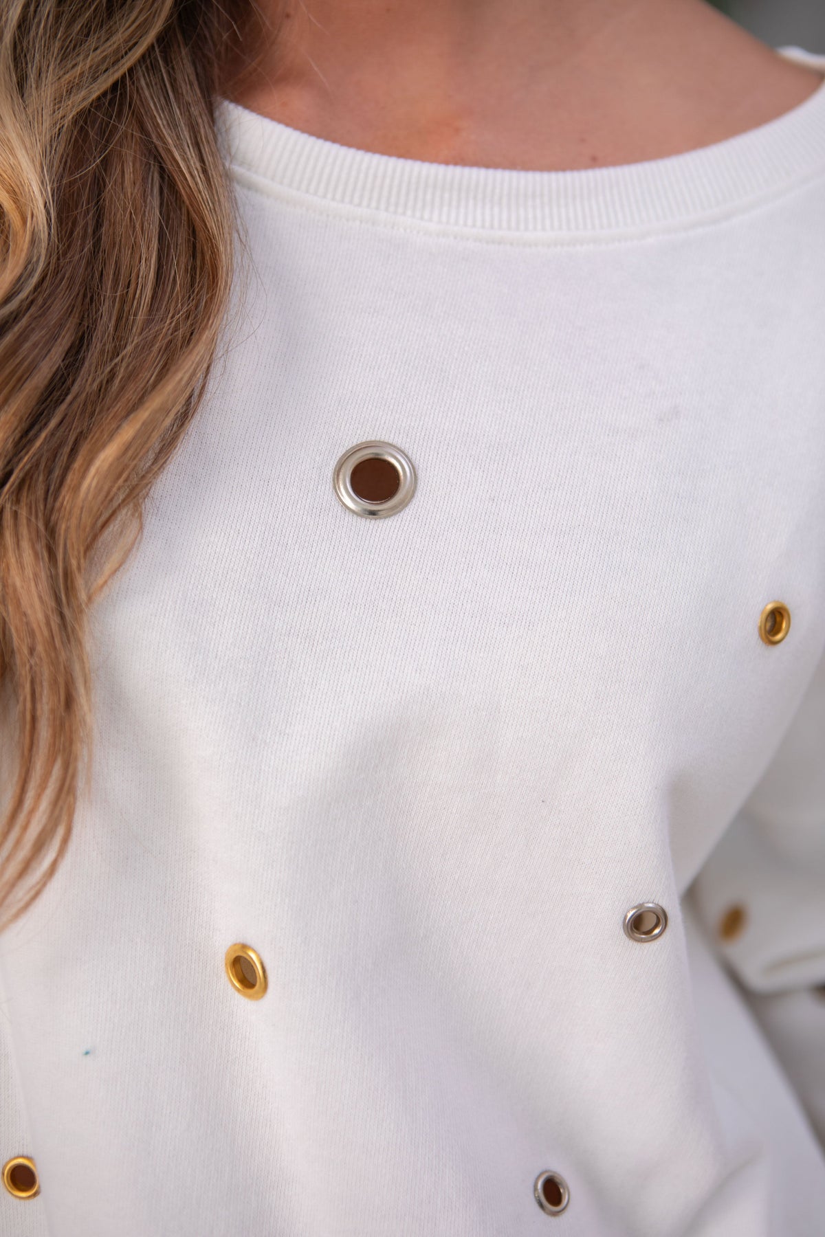 Apportez une touche moderne à vos looks avec ce pull oversize orné d’œillets dorés et argentés. Sa coupe ample et décontractée vous assure confort et style, tandis que ses détails métalliques apportent une note originale et audacieuse. Facile à combiner avec un jean, un pantalon habillé ou une jupe, il s’adapte à toutes vos envies mode.