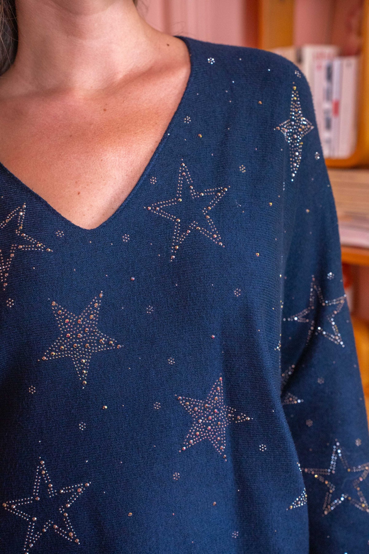 • Haut ample à col V, manches longues