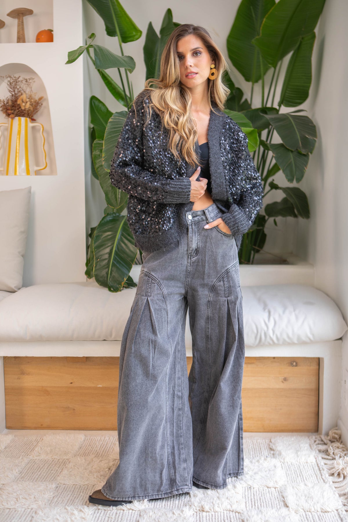Ce gilet en maille brille par son style unique grâce à ses sequins lumineux sur l’avant. Confortable et sophistiqué, il se porte aussi bien pour une touche festive que pour sublimer vos looks du quotidien. Une pièce incontournable pour illuminer vos soirées d’hiver.