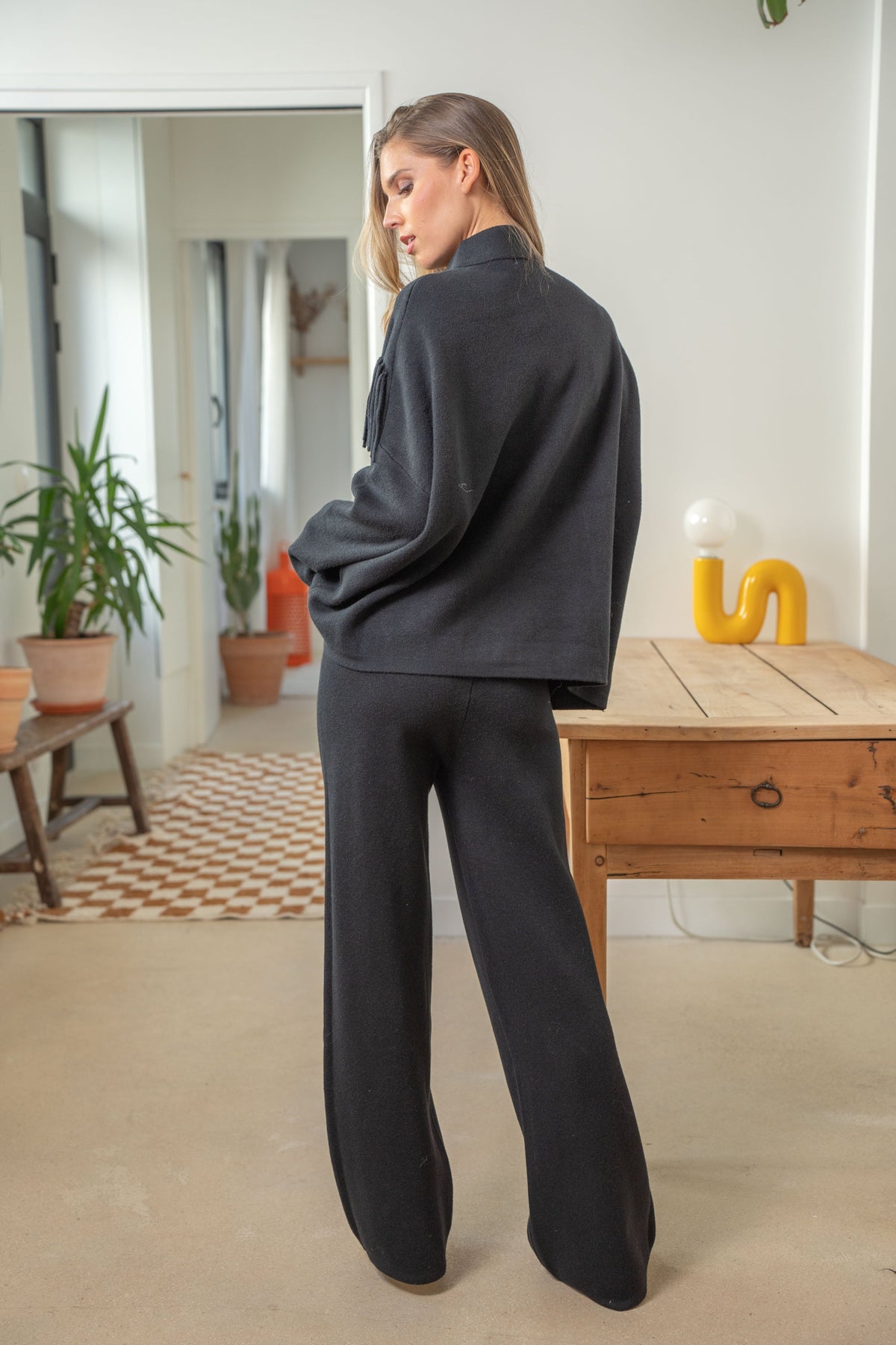 Gilet doux et confortable, mise en valeur par une ligne de franges sur la poitrine pour une touche moderne et originale. Les boutons dorés apportent une finition chic, parfaite pour un look raffiné et tendance.