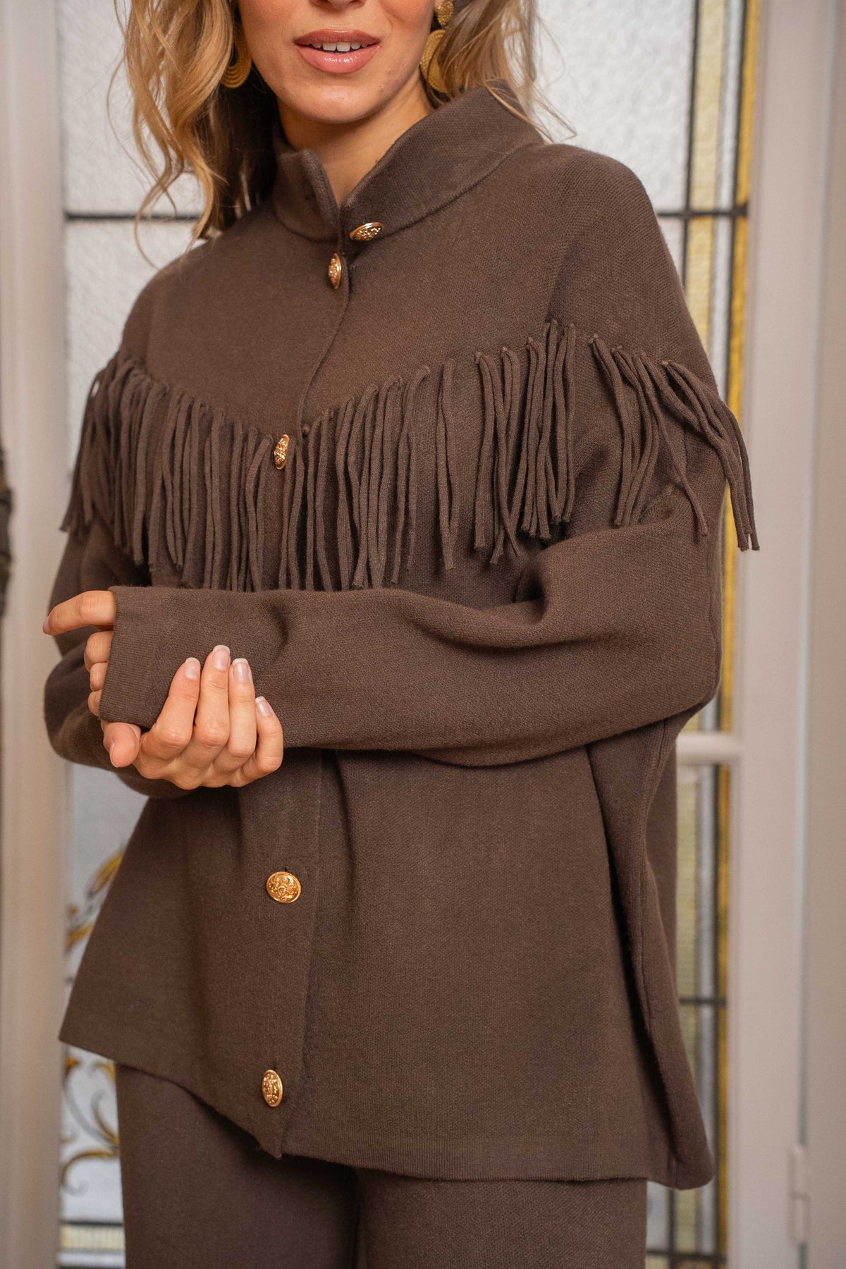 Gilet boutonné à franges Felice Taille unique / Coffee