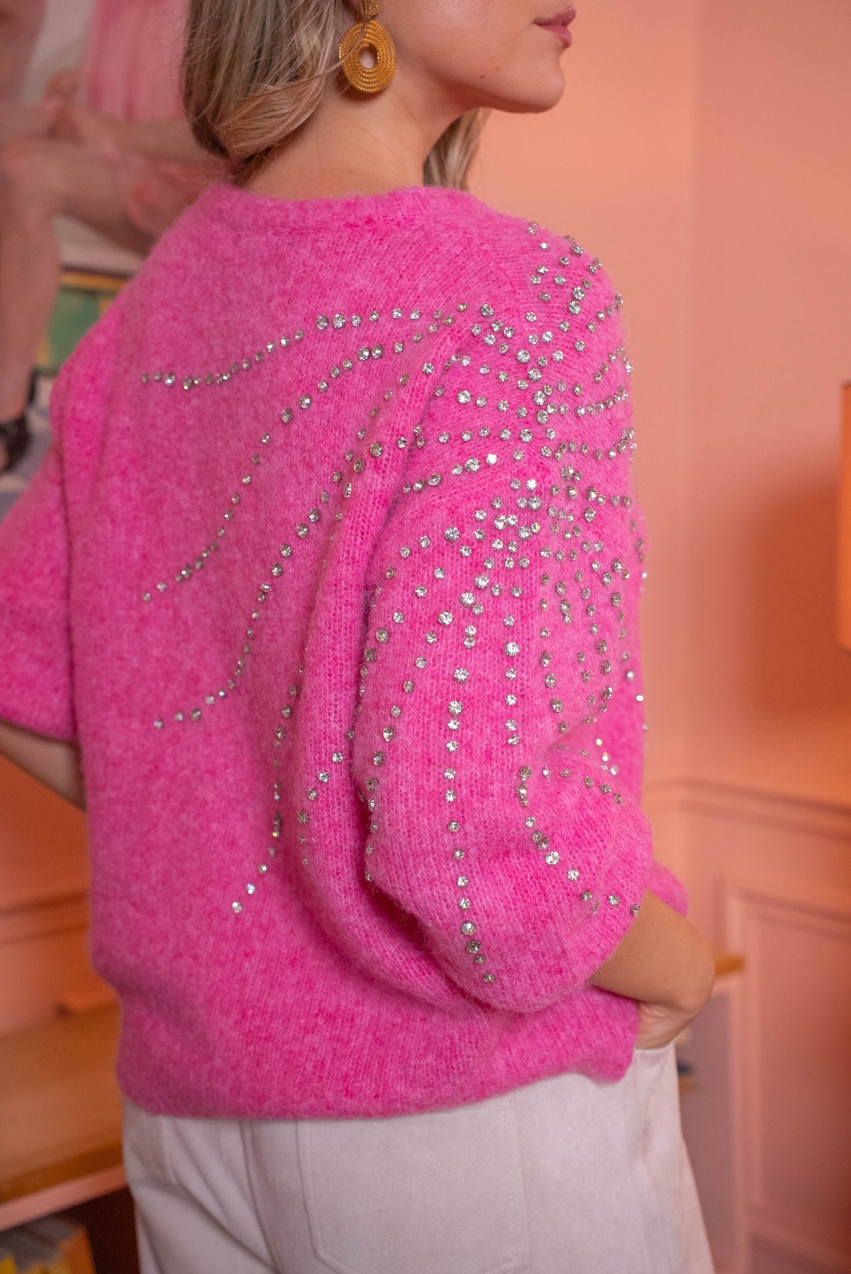 Pull col rond avec strass Liv Taille unique / Rose pulls