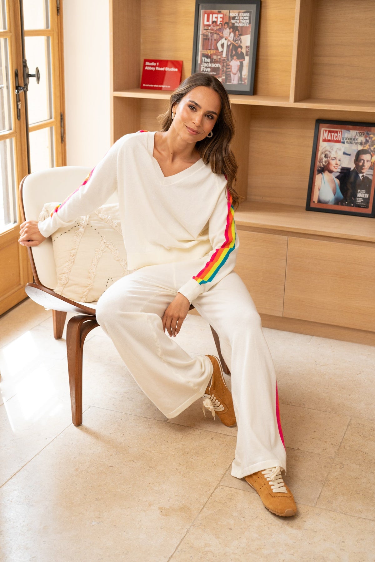 Pull col v arc en ciel Capsule Taille unique / Ecru pulls
