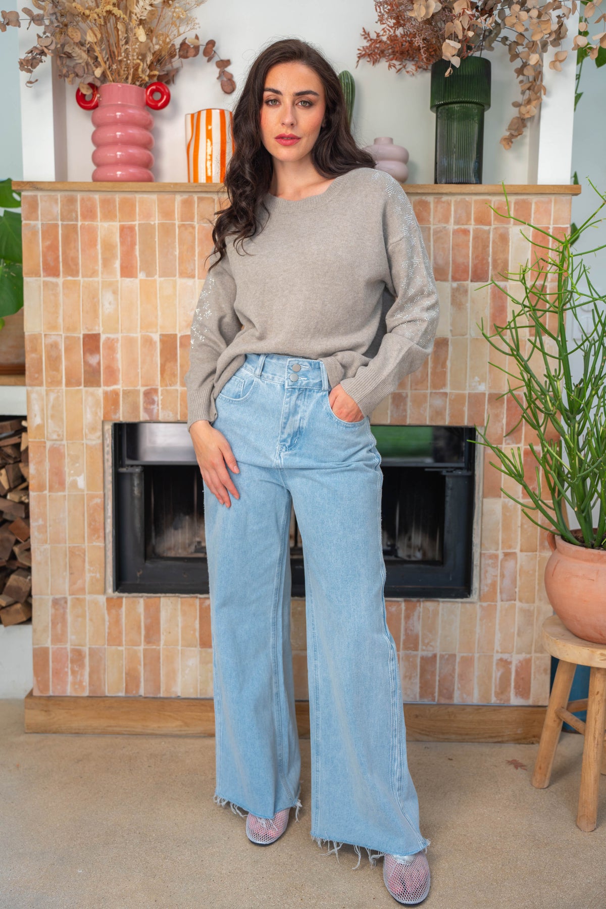 Pull en maille étoiles strass Poppy Taille unique / Taupe