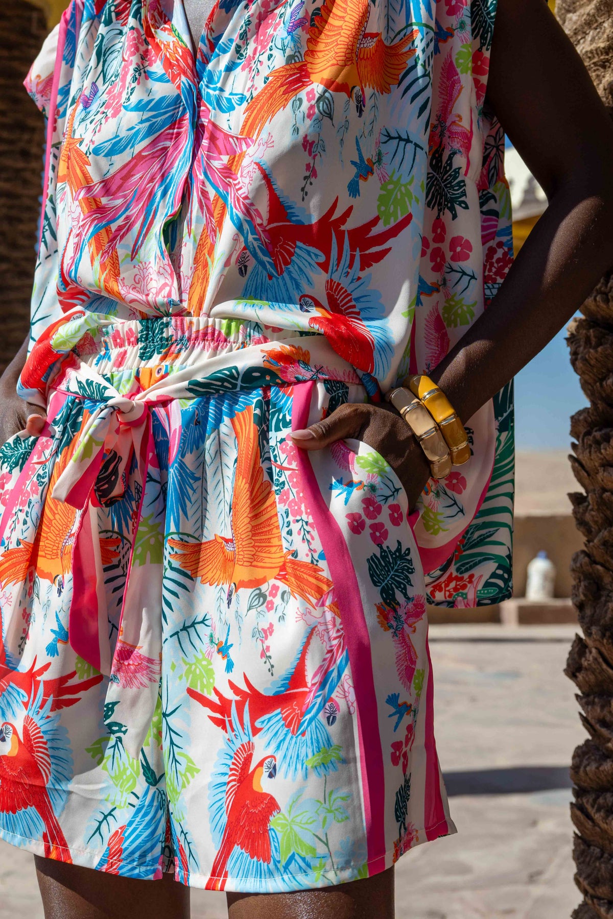 • Short avec ceinture à nouer