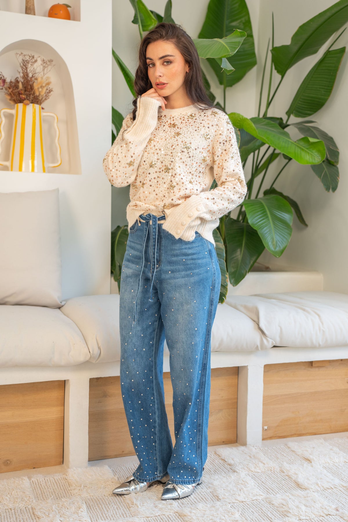 Pull à sequins Baby - Taille unique / Beige - pulls