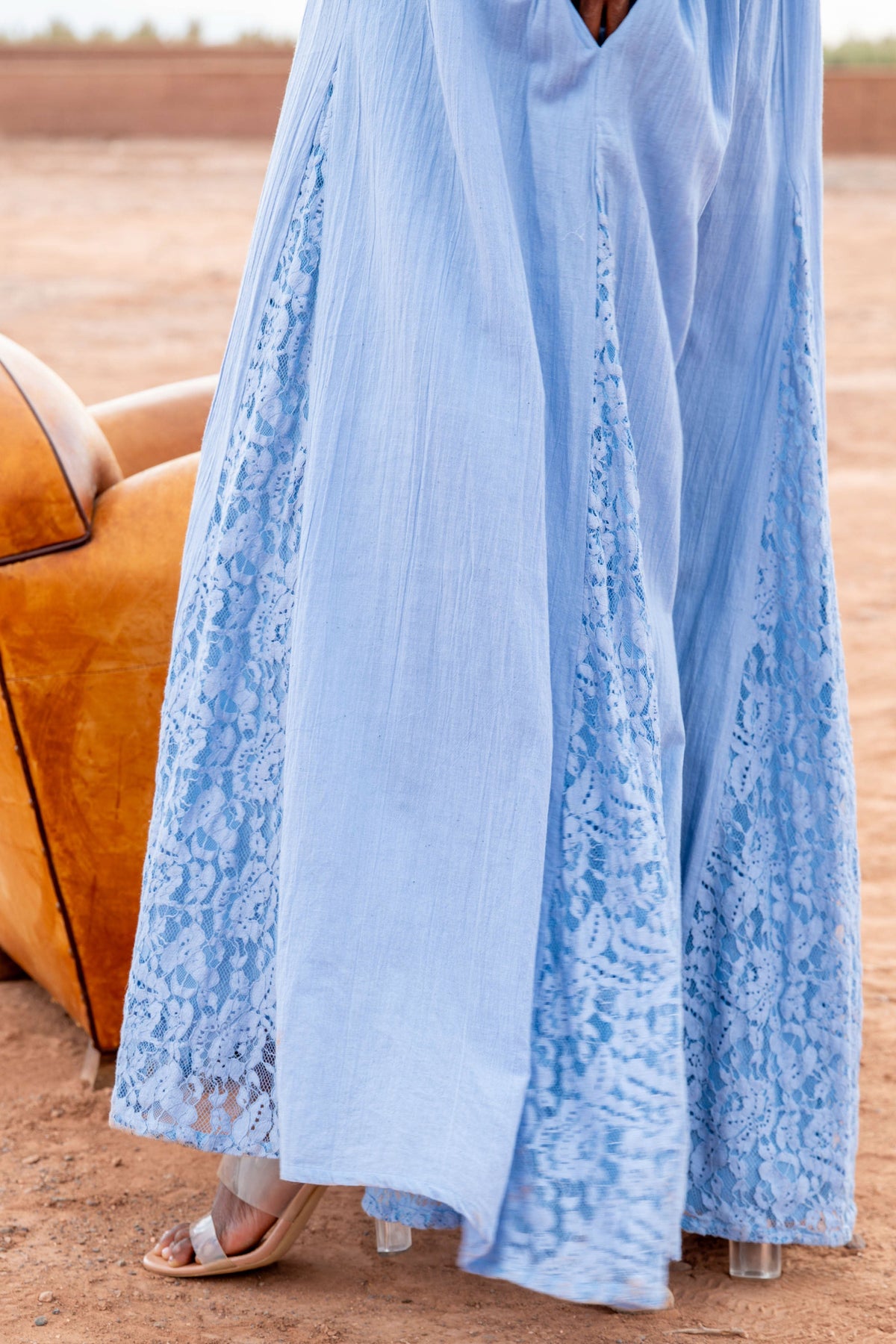 La coupe ample apporte confort et mouvement, tandis que les manches courtes larges renforcent l’allure bohème et estivale. Des empiècements en dentelle viennent délicatement structurer la robe et ajouter une touche féminine. Une pièce facile à porter, idéale pour les journées chaudes ou les looks vacances.
